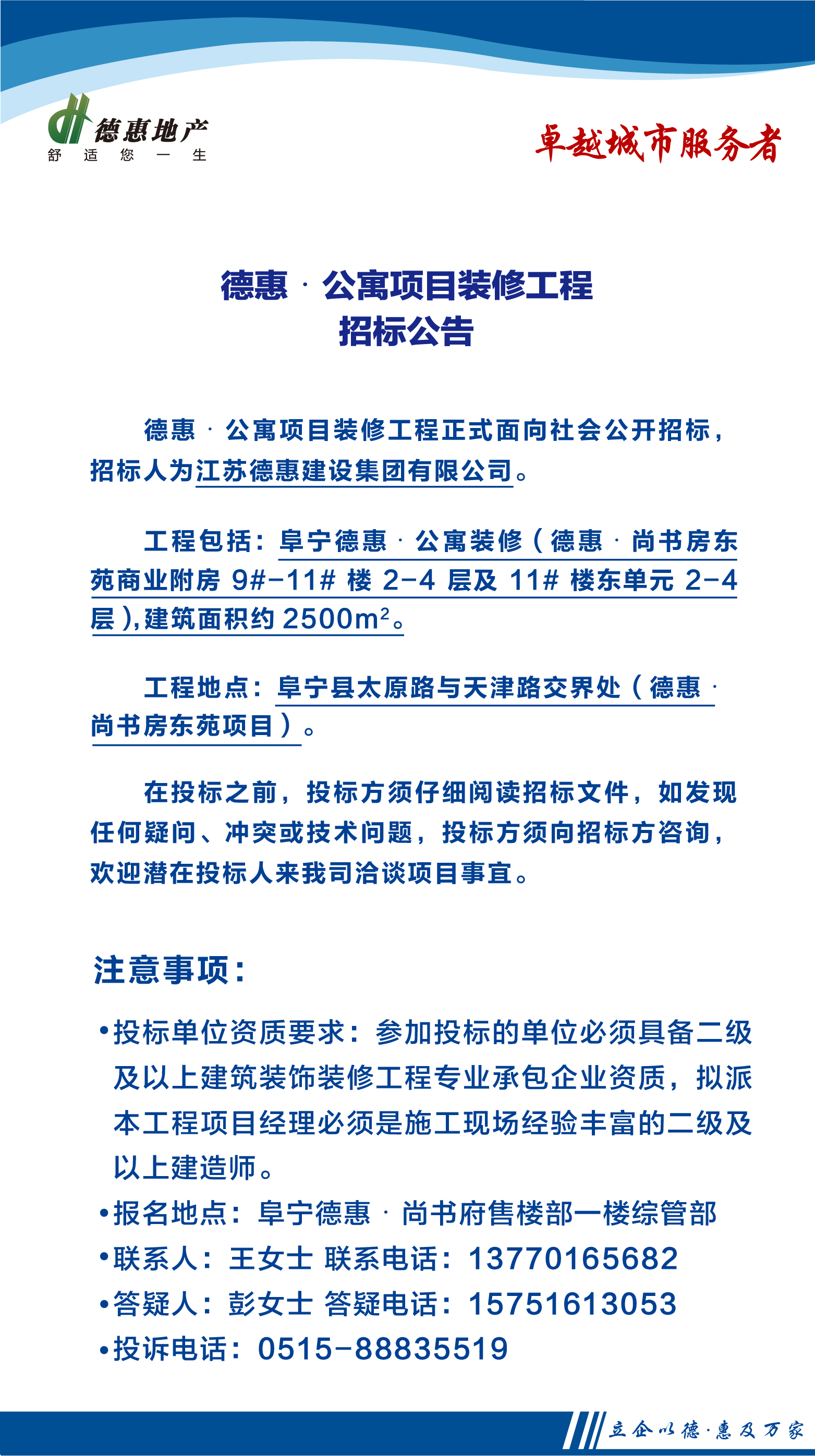 德惠·公寓項(xiàng)目裝修工程招標(biāo)公告