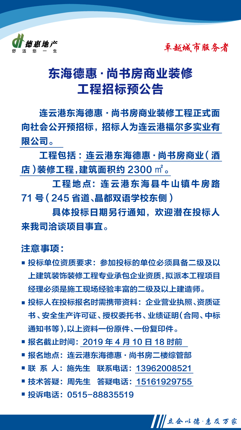 東海德惠·尚書房商業(yè)裝修工程招標預(yù)公告