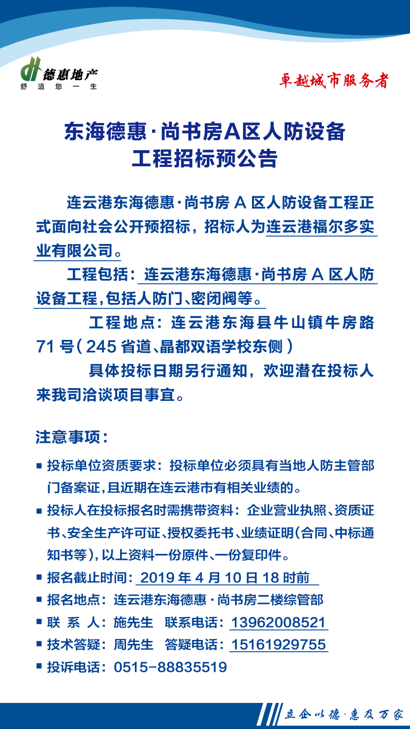 東海德惠·尚書房A區(qū)人防設備工程招標預公告