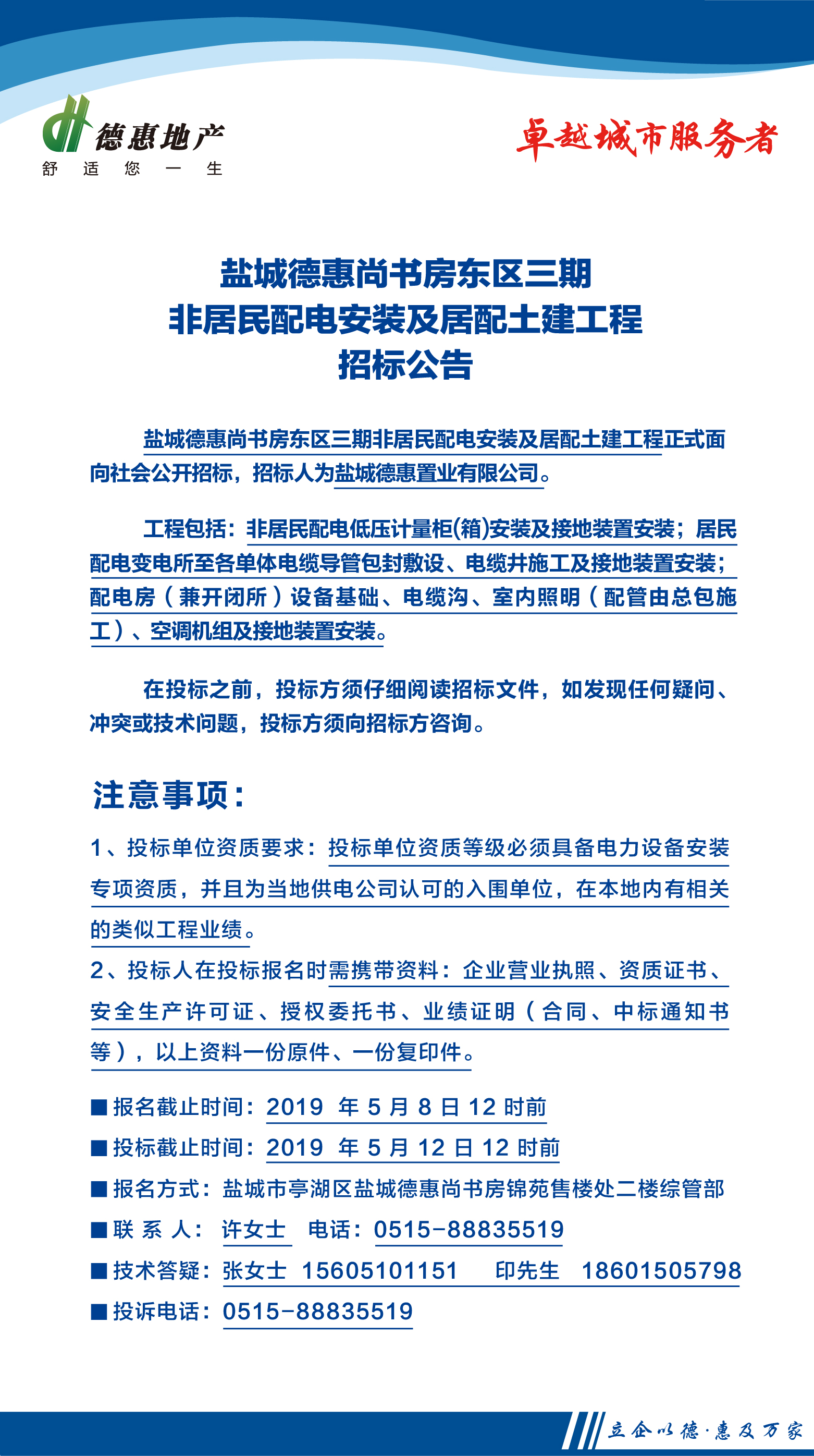 鹽城德惠尚書房東區(qū)三期非居民配電安裝及居配土建工程招標(biāo)公告