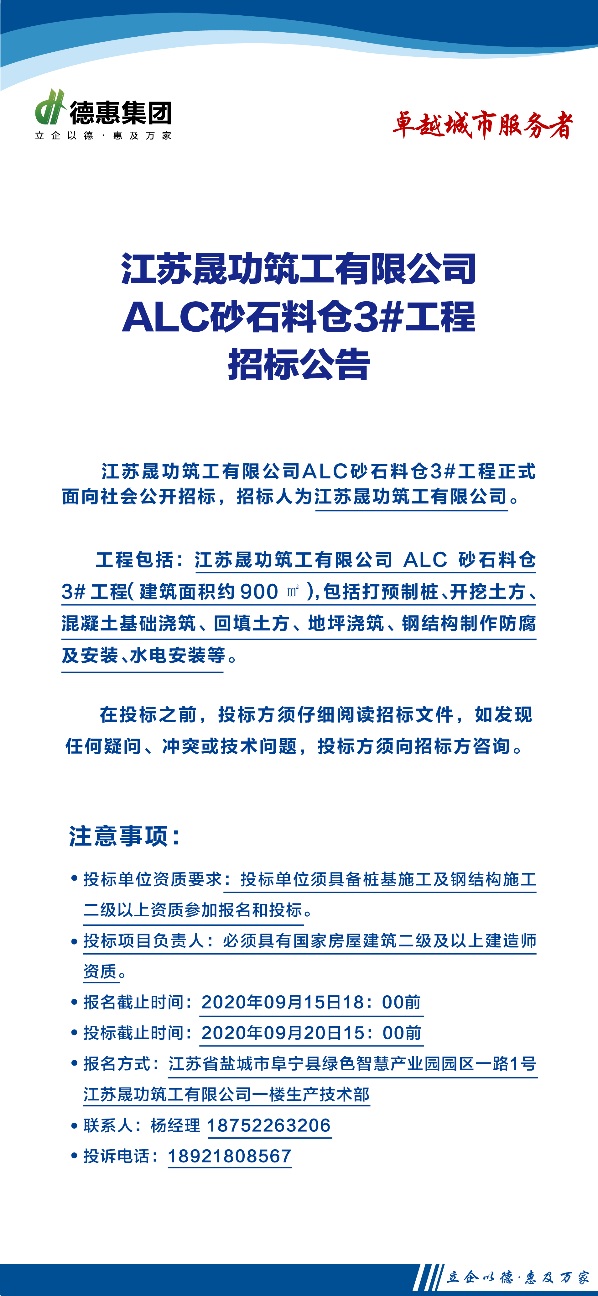 連云港德惠尚書房二期(22#、30#、31#、32#)欄桿、雨棚工程招標(biāo)公告
