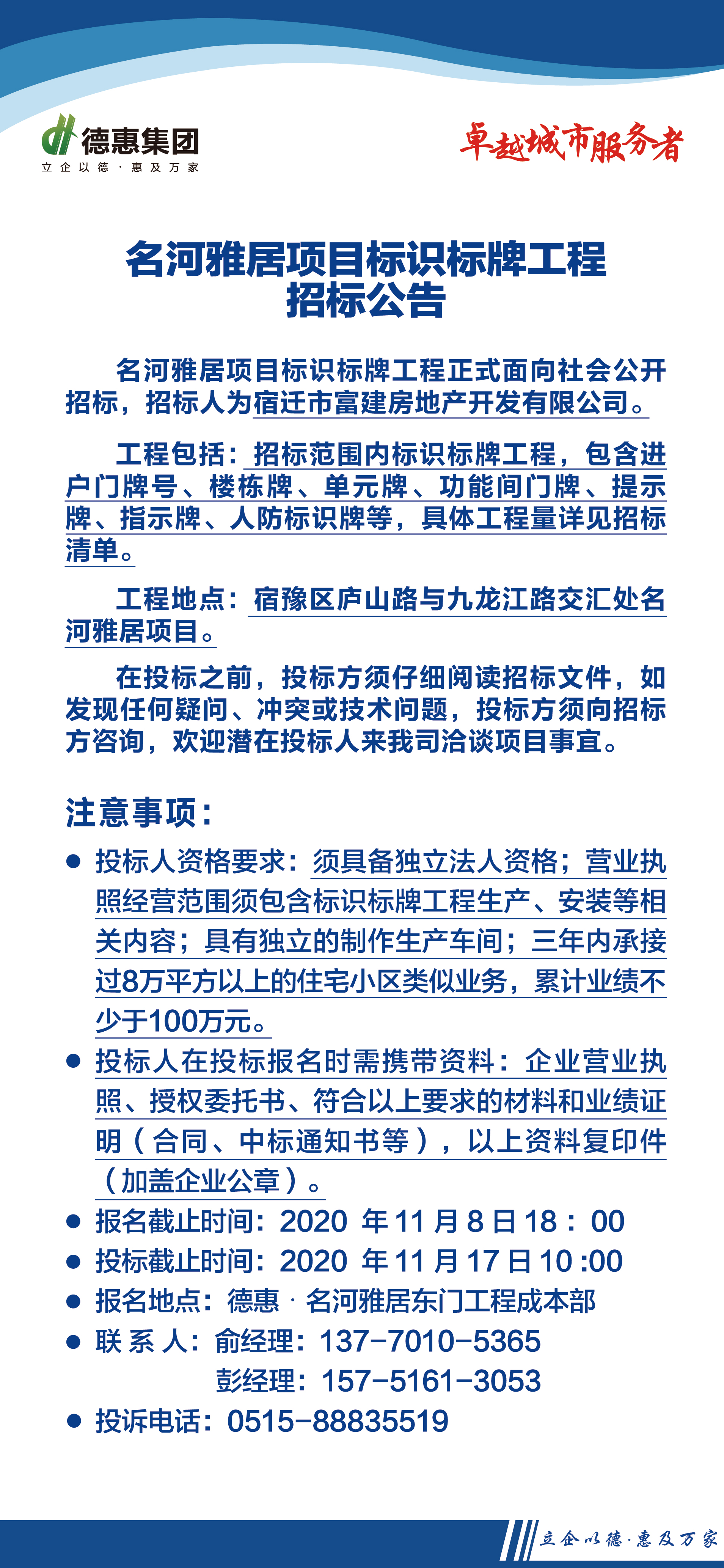 名河雅居項目標識標牌工程招標公告
