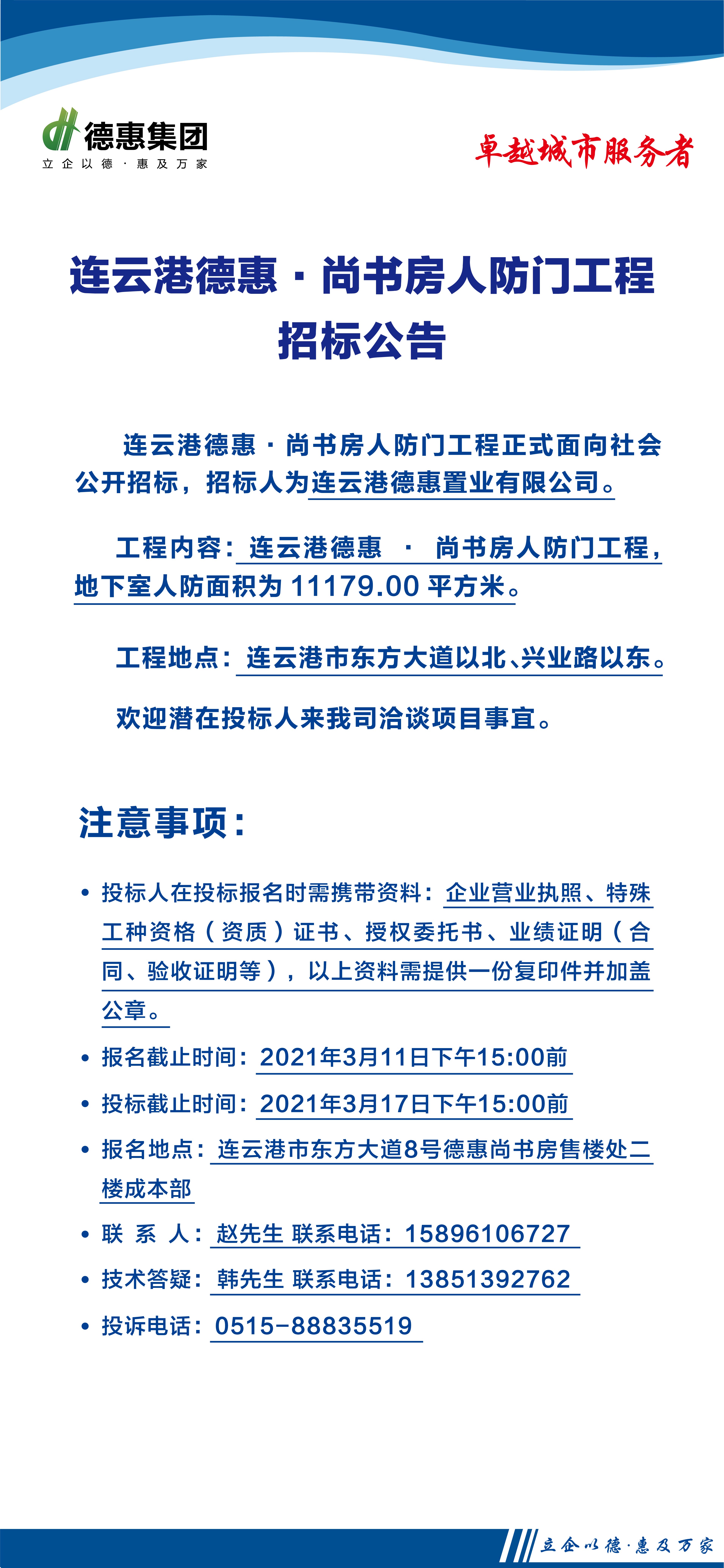 連云港德惠尚書房人防門工程招標(biāo)公告