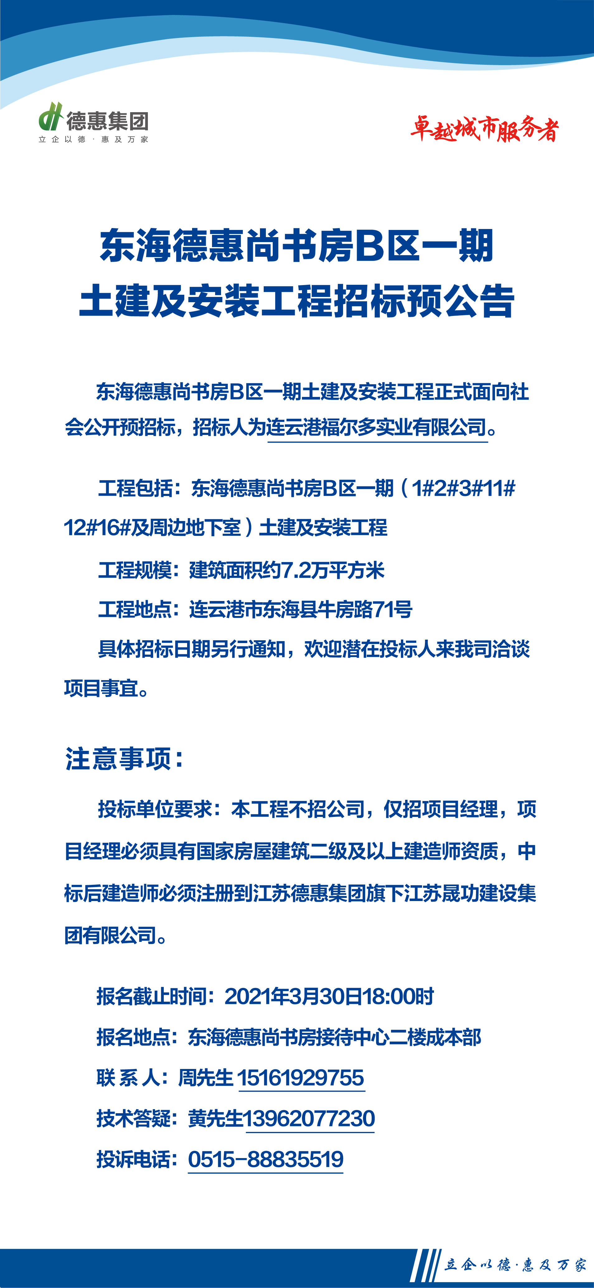 東海德惠尚書(shū)房B區(qū)一期土建及安裝工程招標(biāo)公告