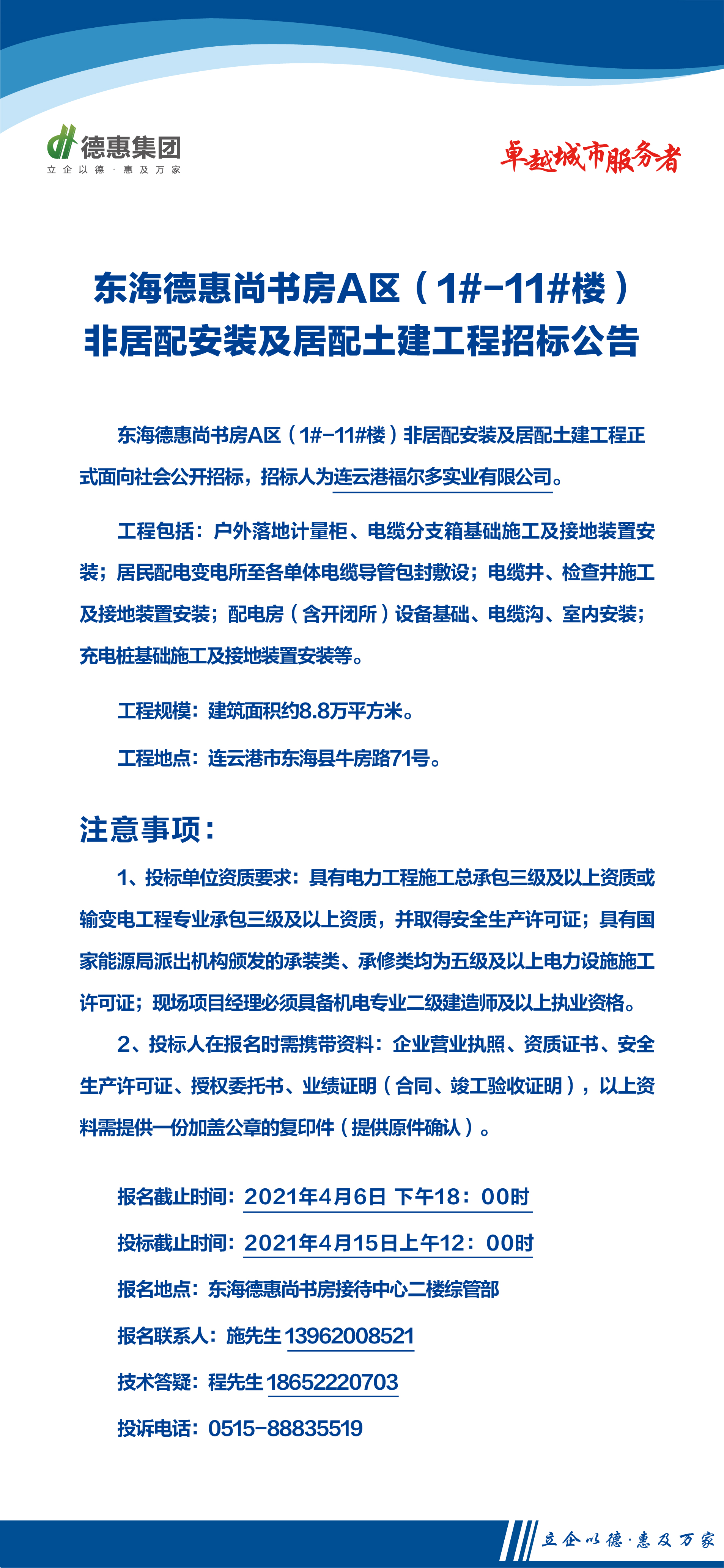 東海德惠尚書房A區(qū)(1#-11#樓)非居配安裝及居配土建工程