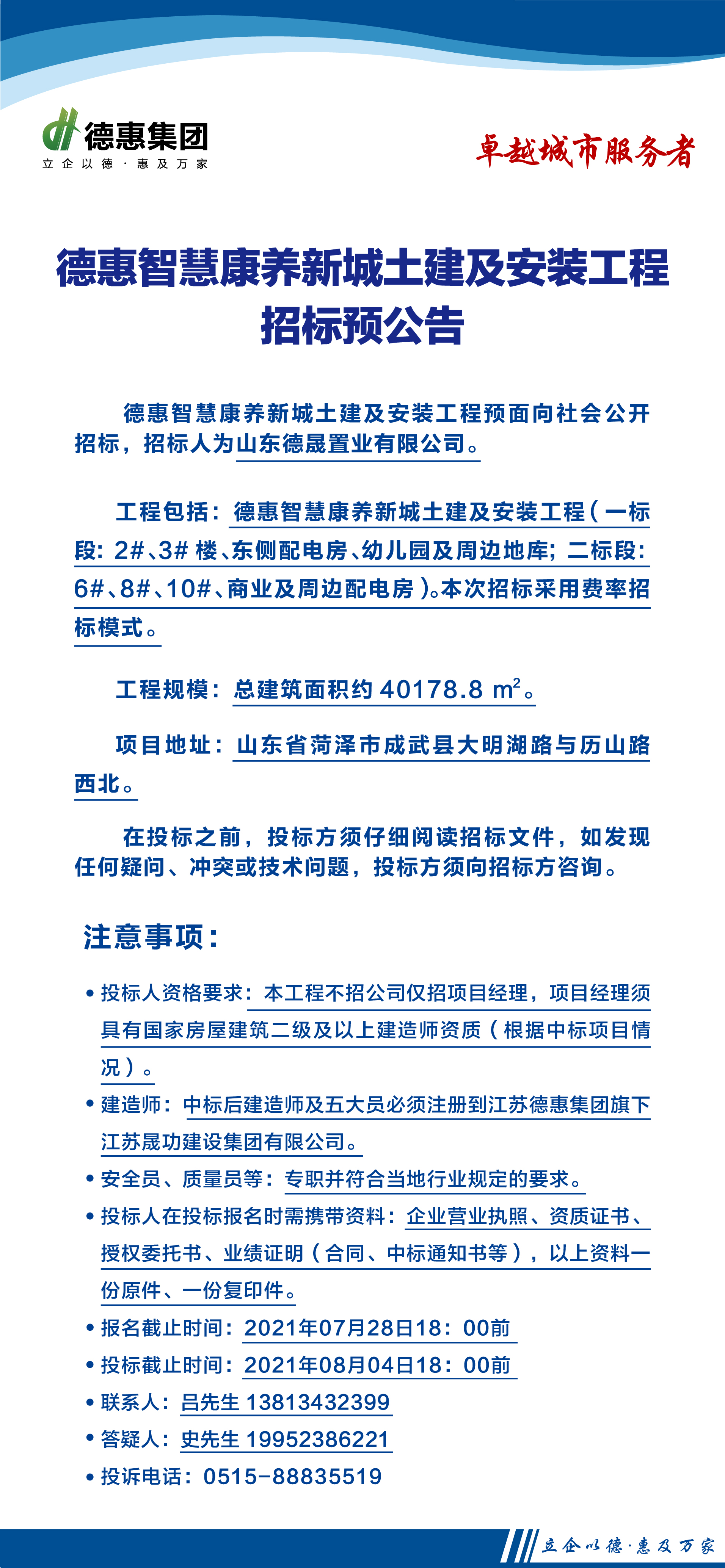 德惠智慧康養(yǎng)新城土建及安裝招標(biāo)預(yù)公告