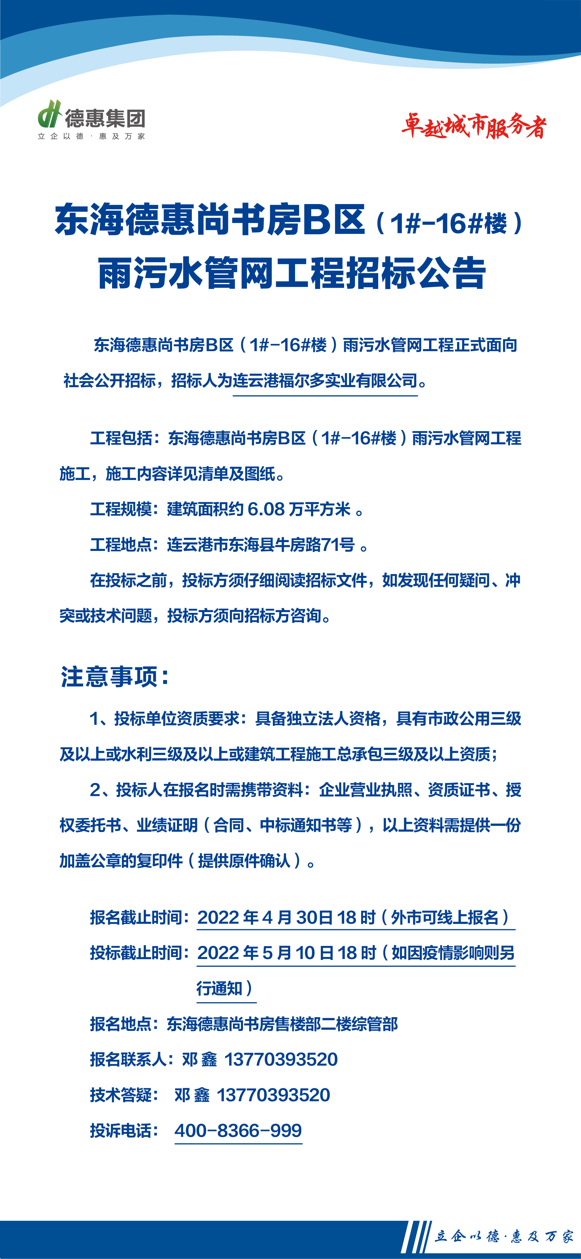 東海德惠尚書房B區(qū)(1#-16#樓)雨污水管網(wǎng)工程