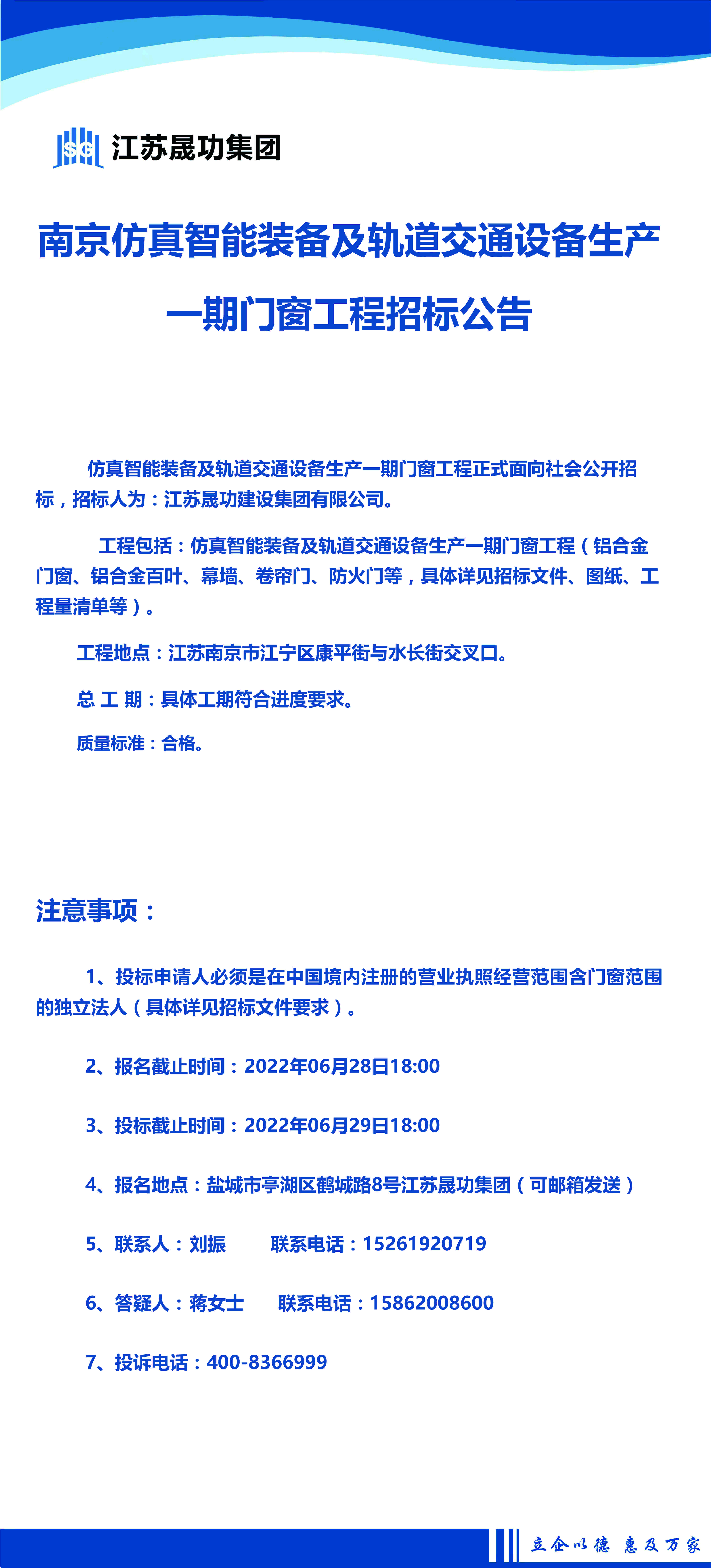 南京仿真智能裝備及軌道交通設(shè)備生產(chǎn)一期門窗專業(yè)分包工程