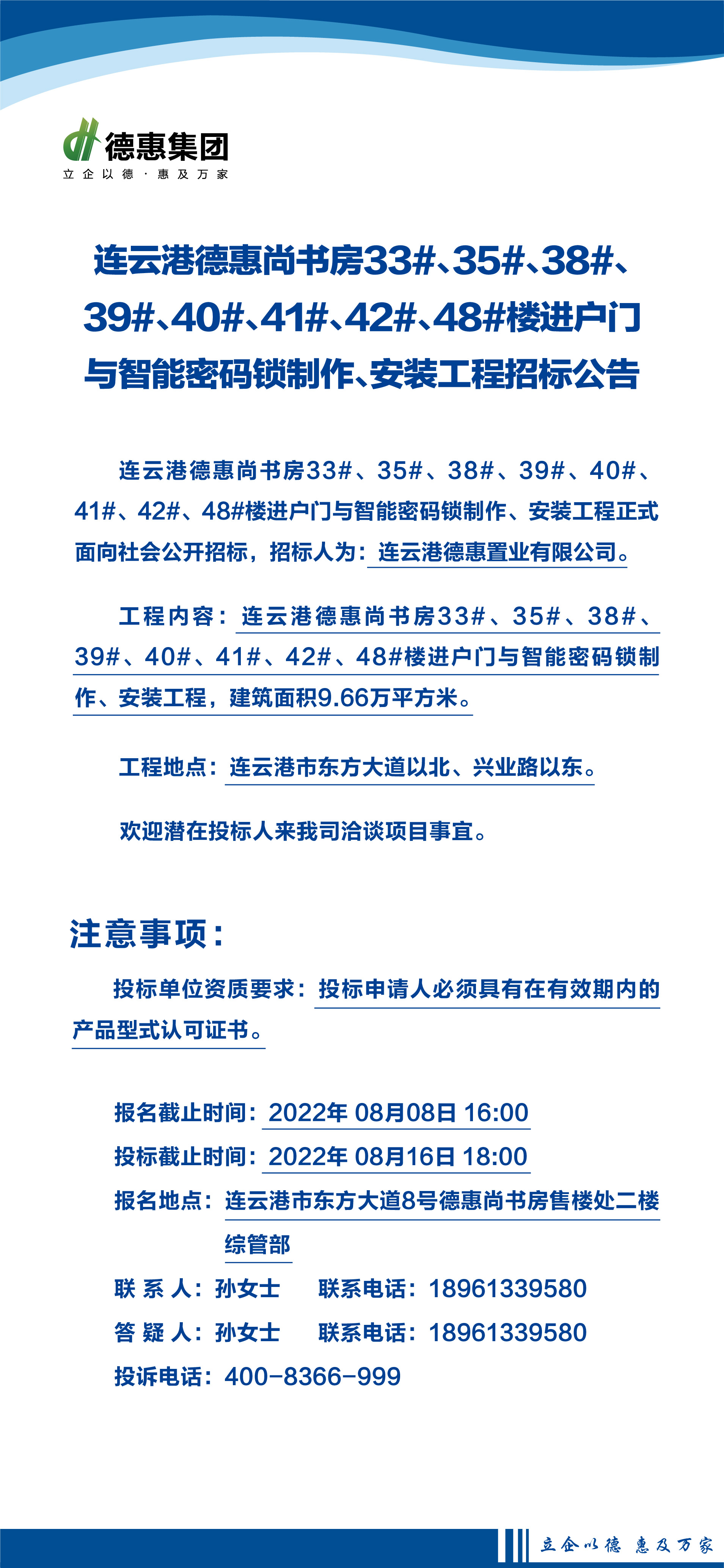 連云港德惠·尚書房進戶門、智能密碼鎖工程