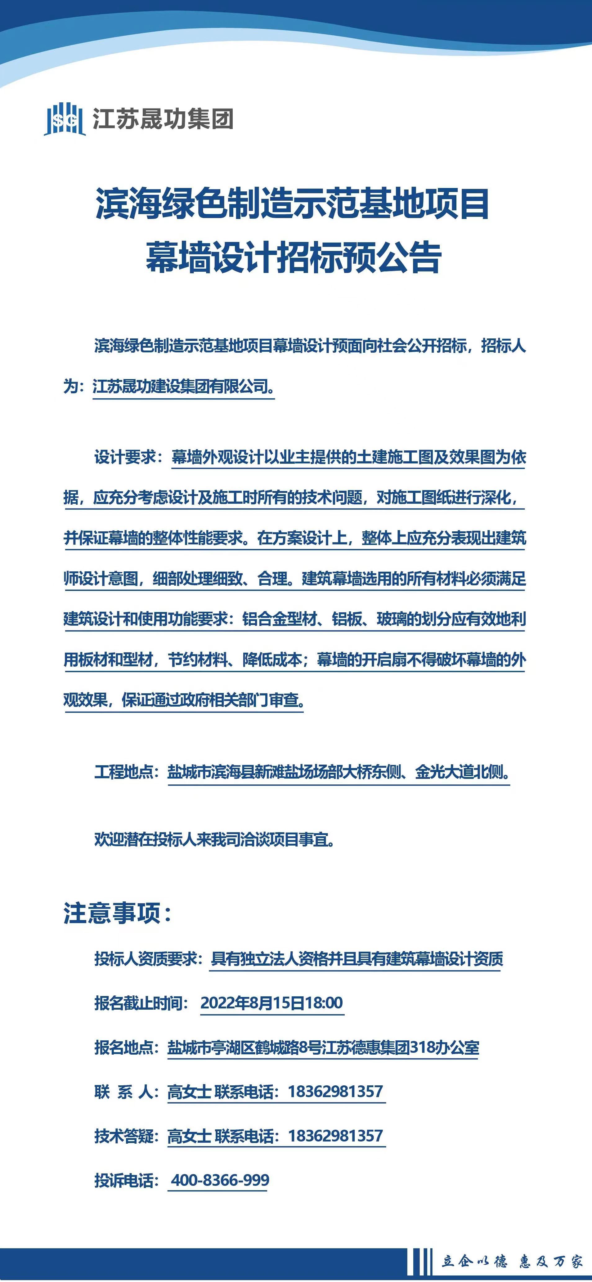 濱海綠色制造示范基地項(xiàng)目幕墻設(shè)計(jì)預(yù)招標(biāo)公告