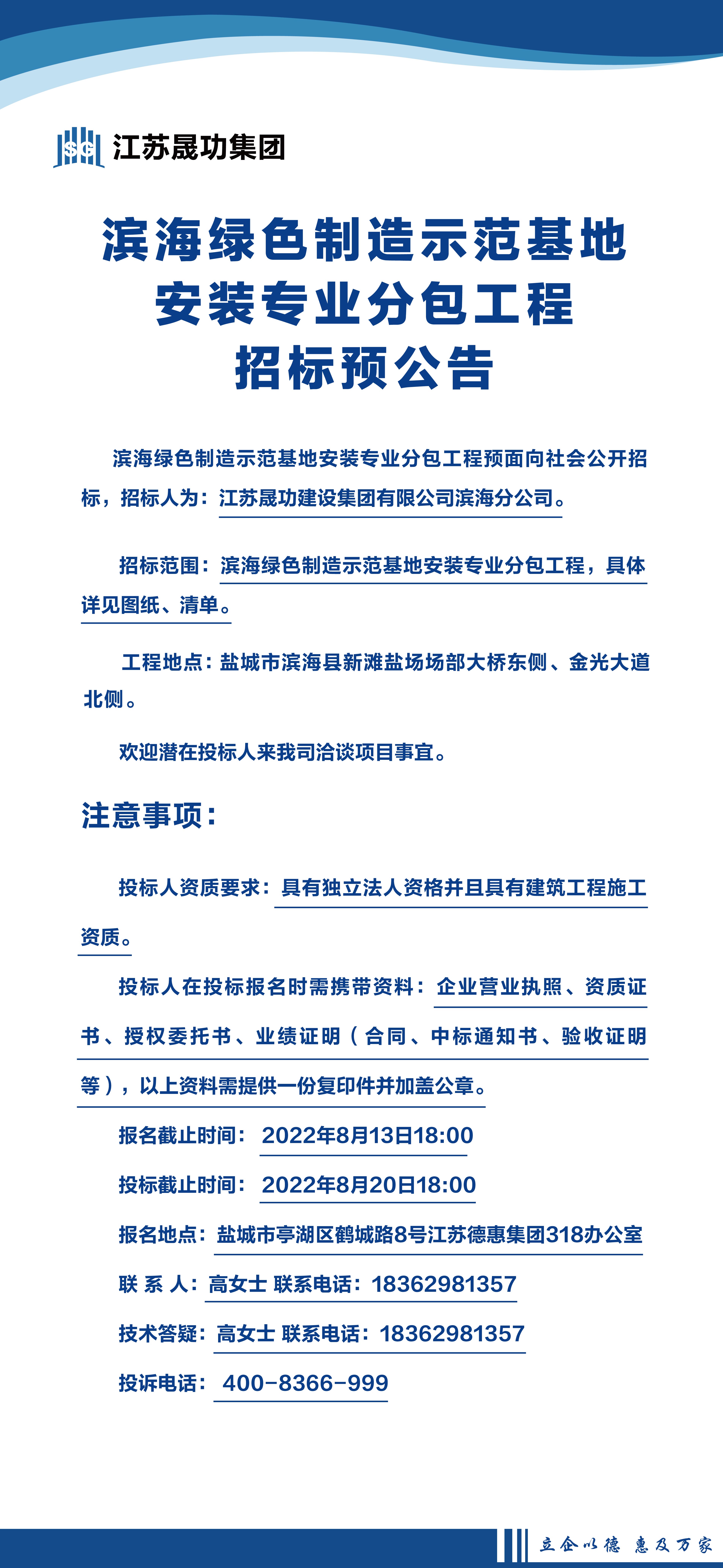 濱海綠色制造示范基地安裝專業(yè)分包工程