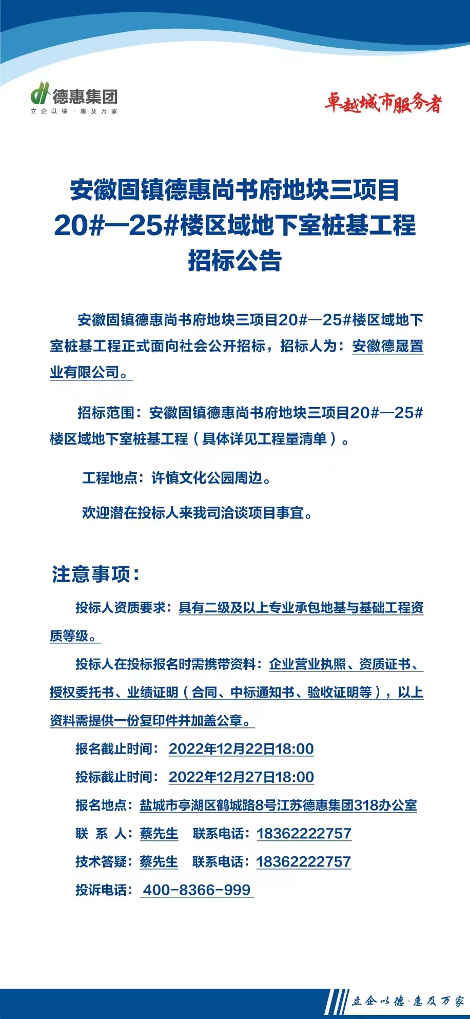 安徽固鎮(zhèn)德惠尚書府地塊三項目20#—25#樓區(qū)域地下室樁基工程