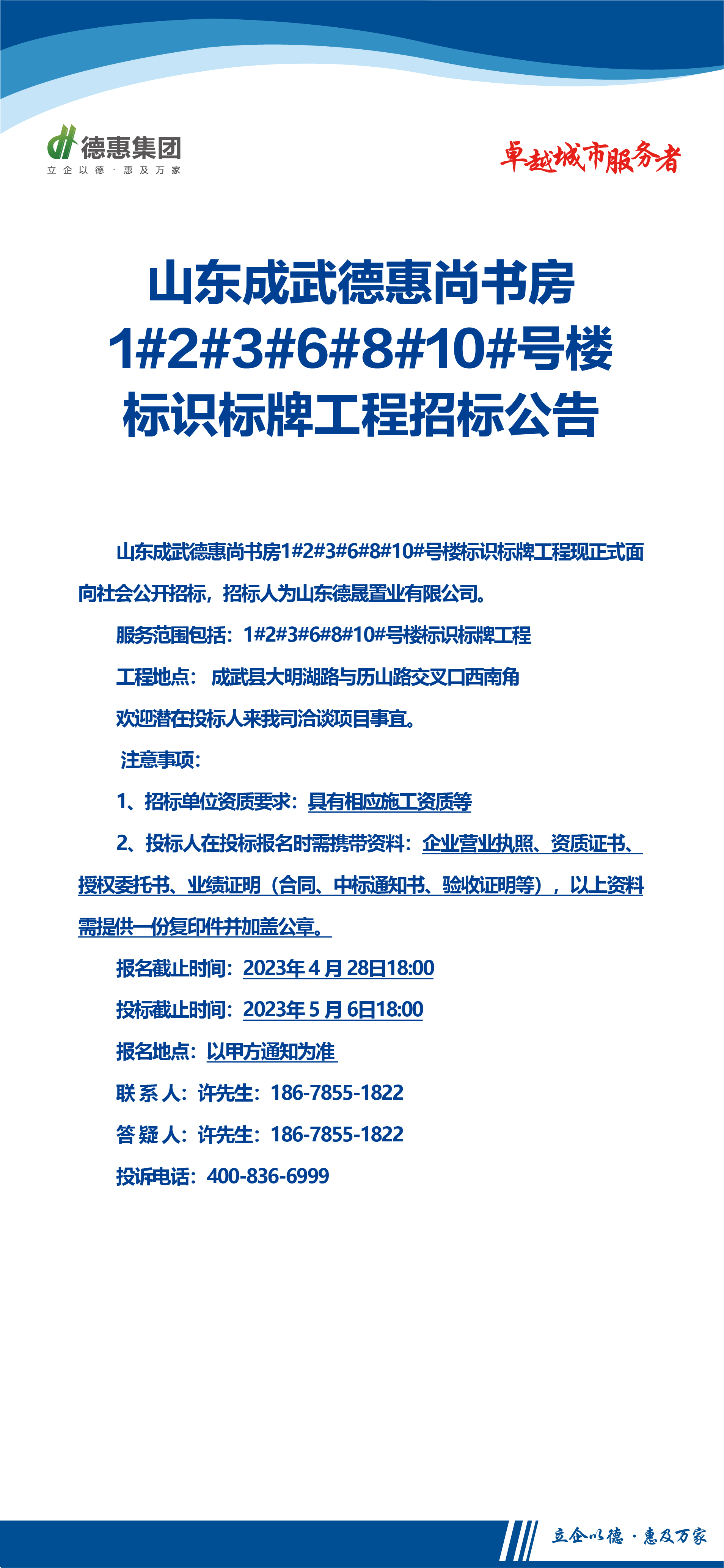 山東成武德惠尚書房1#、2#、3#、6#、8#、10#樓標(biāo)識標(biāo)牌工程