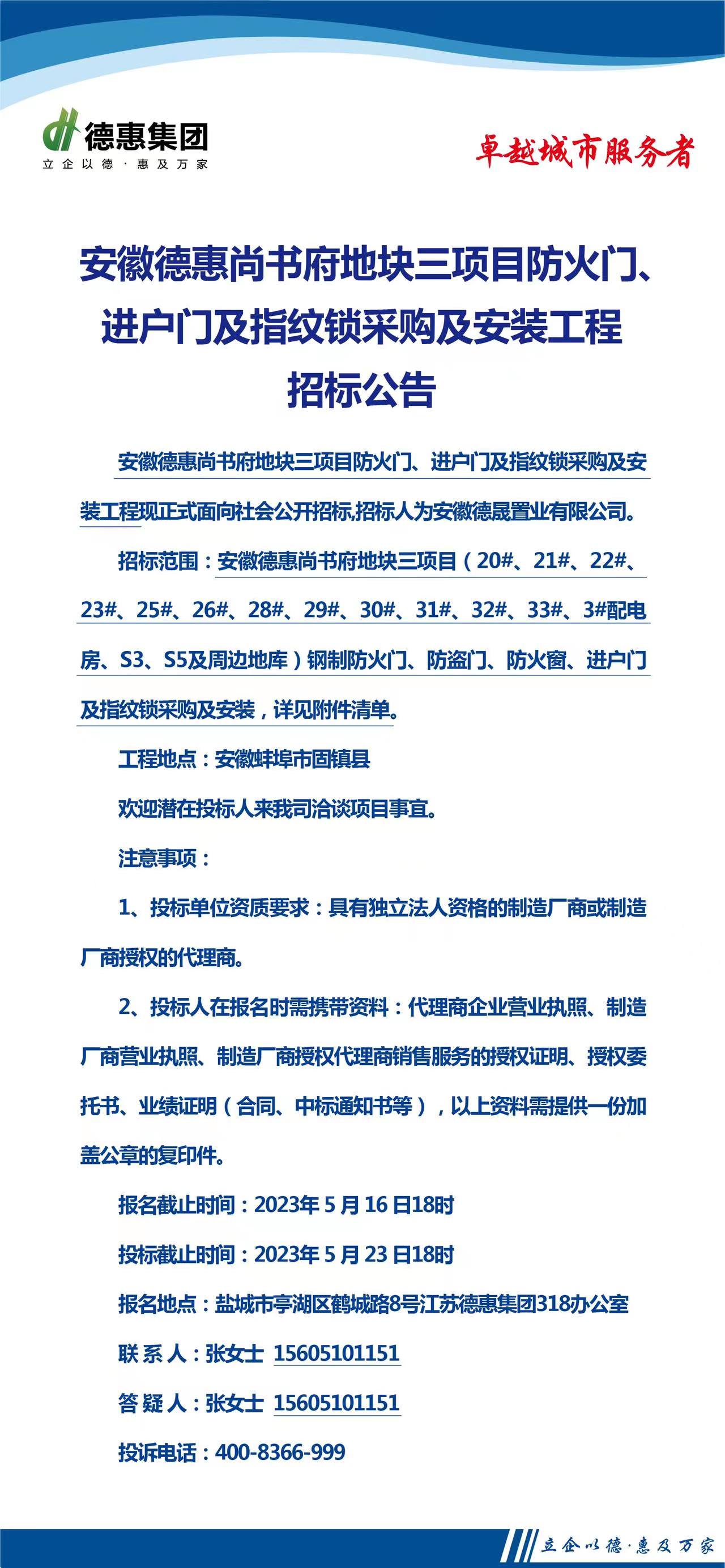安徽德惠尚書府地塊三項目防火門、進戶門專業(yè)分包工程