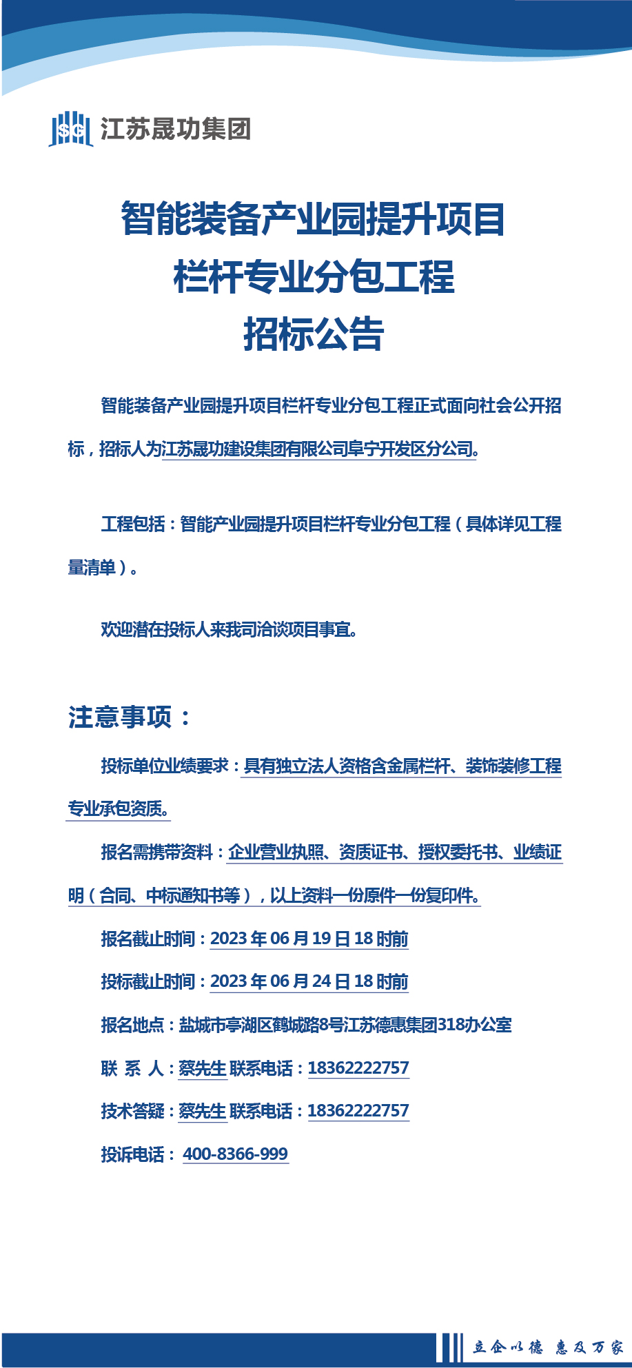 智能裝備產業(yè)園提升項目欄桿專業(yè)分包工程
