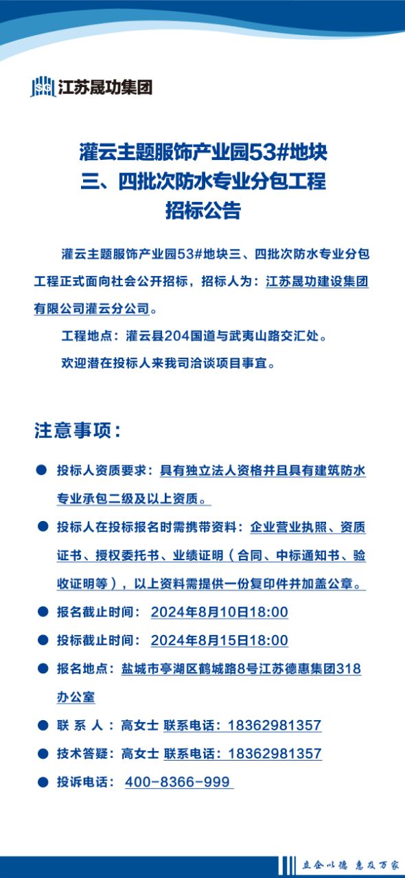 灌云主題服飾產(chǎn)業(yè)園53#地塊三、四批次防水專業(yè)分包工程
