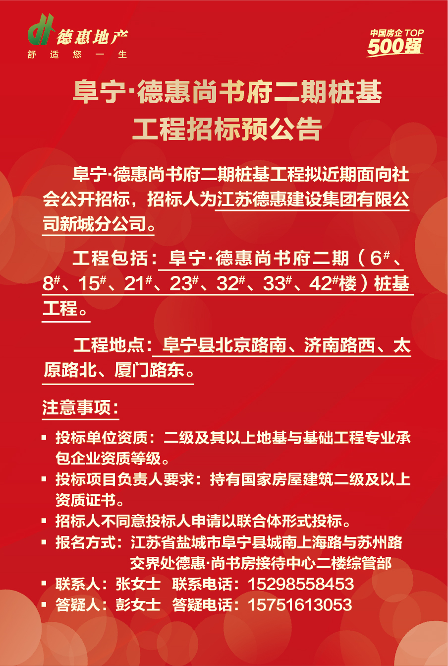 阜寧德惠·尚書府二期樁基工程招標(biāo)公告