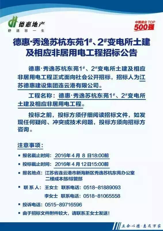 連云港秀逸蘇杭東苑1#、2#變電所土建招標(biāo)公告