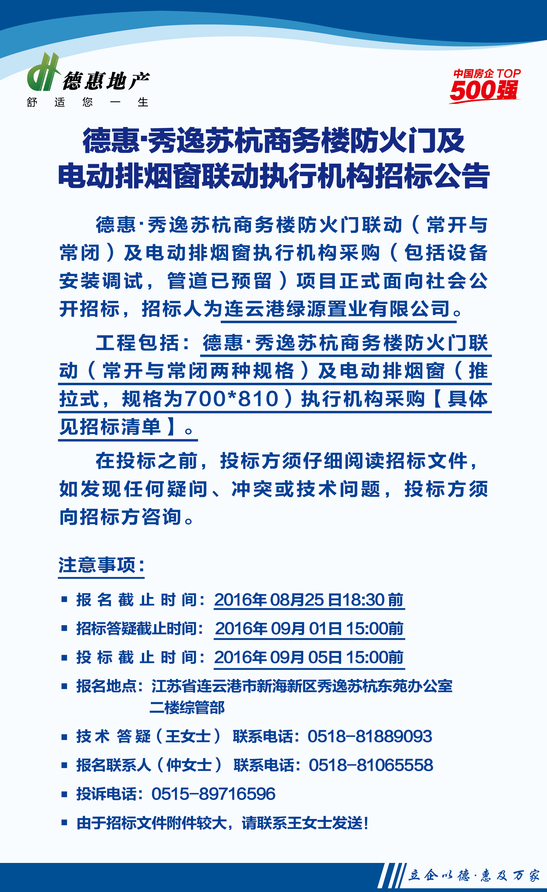 連云港秀逸蘇杭商務樓防火門及電動排煙窗聯(lián)動執(zhí)行機構招標公告
