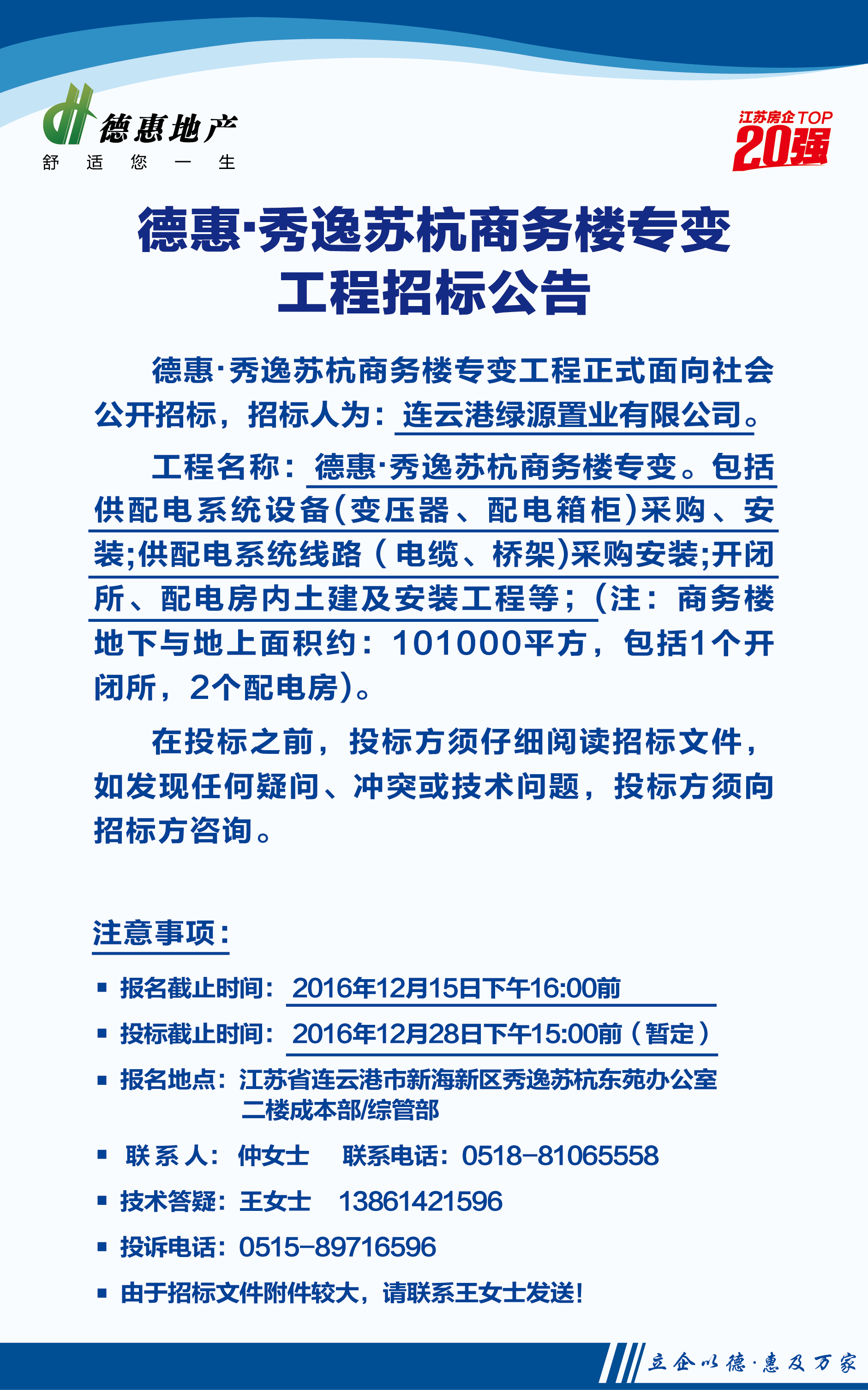 德惠﹒秀逸蘇杭商務(wù)樓專變工程招標(biāo)公告