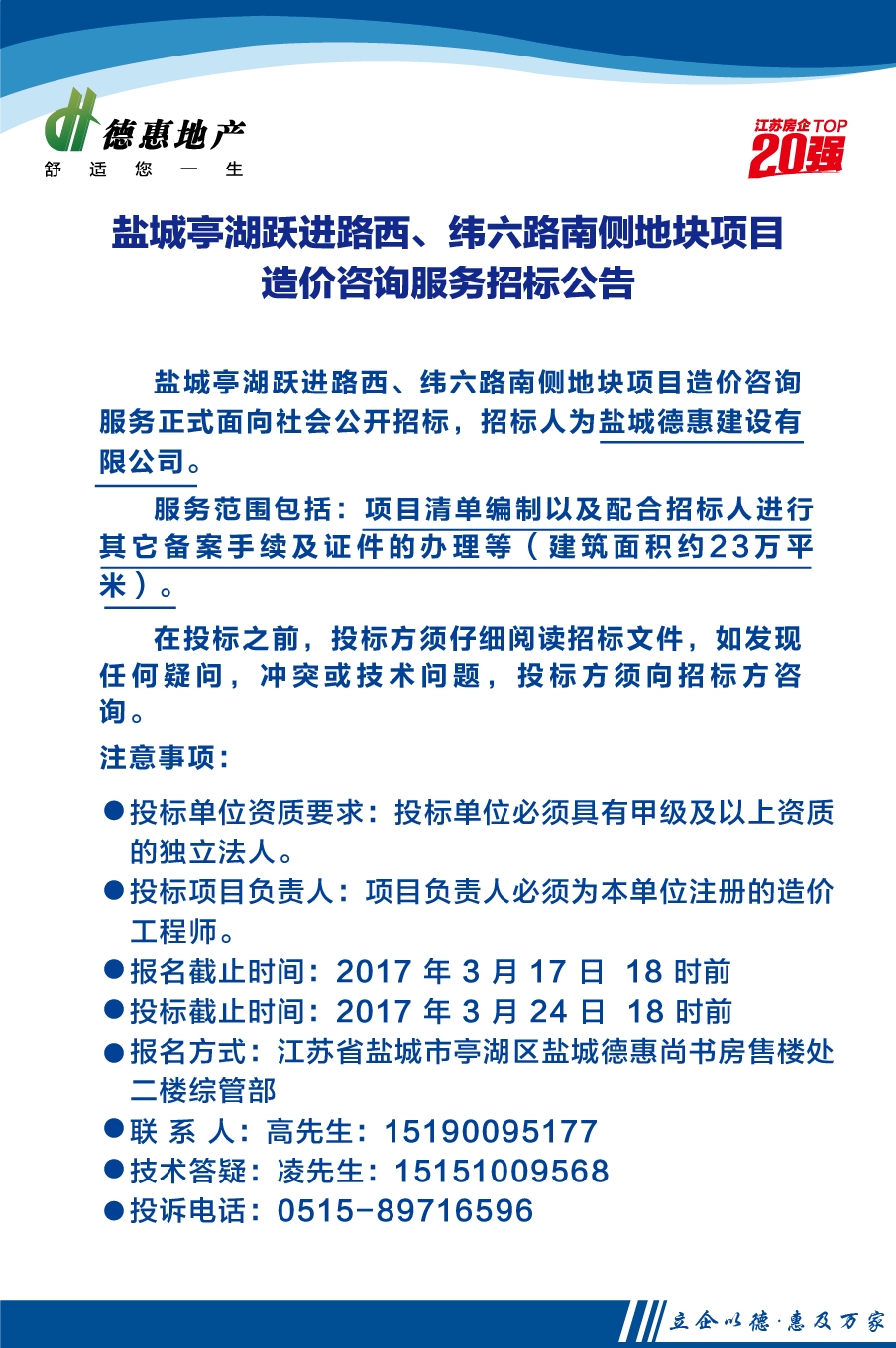 鹽城亭湖躍進(jìn)路西、緯六路南側(cè)地塊項(xiàng)目造價(jià)咨詢(xún)服務(wù)招標(biāo)公告