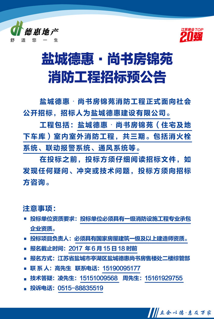 鹽城德惠•尚書房錦苑消防工程招標預公告