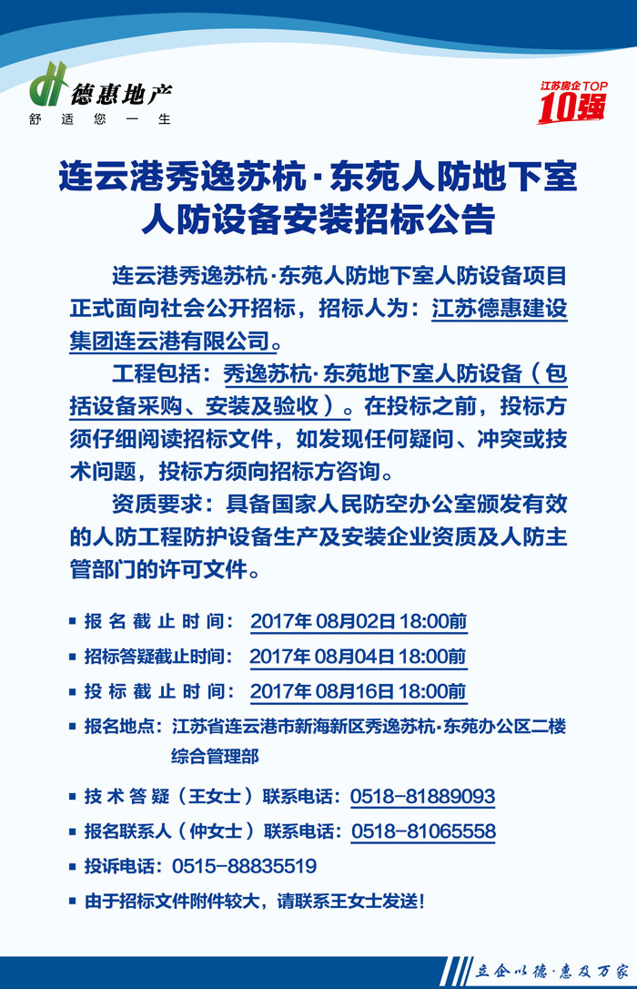 連云港秀逸蘇杭·東苑人防地下室人防設(shè)備安裝招標公告