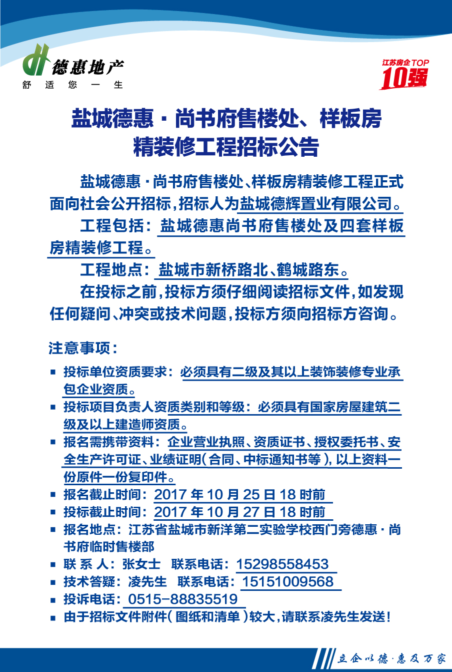 鹽城德惠·尚書府售樓處、樣板房精裝修工程招標(biāo)公告