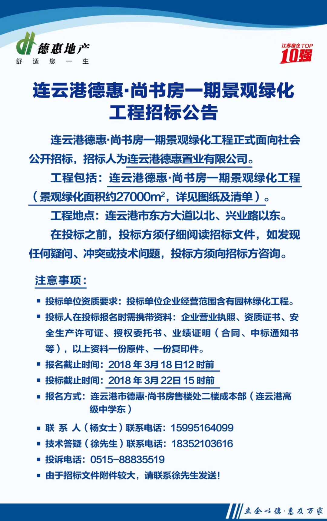 連云港德惠·尚書房一期景觀綠化工程招標(biāo)公告