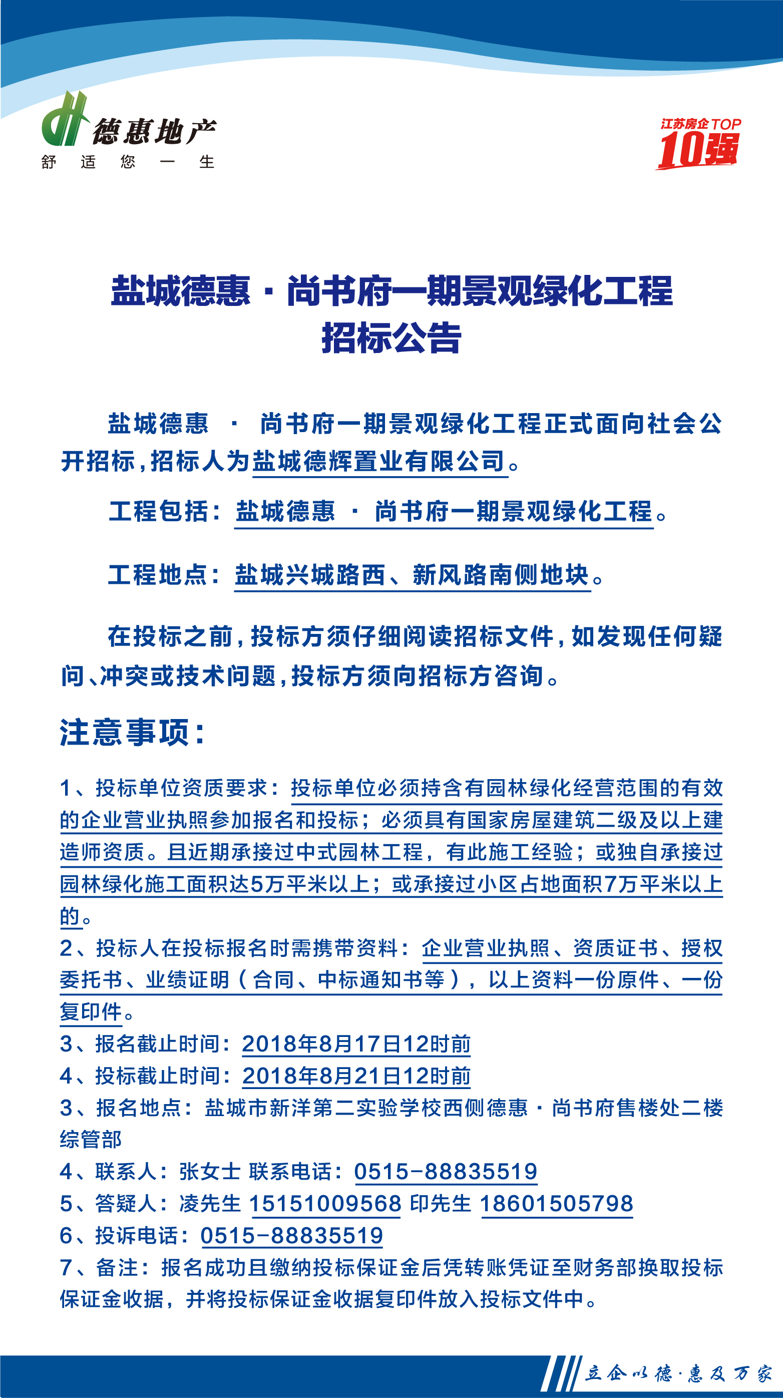 鹽城德惠·尚書府一期景觀綠化工程招標公告