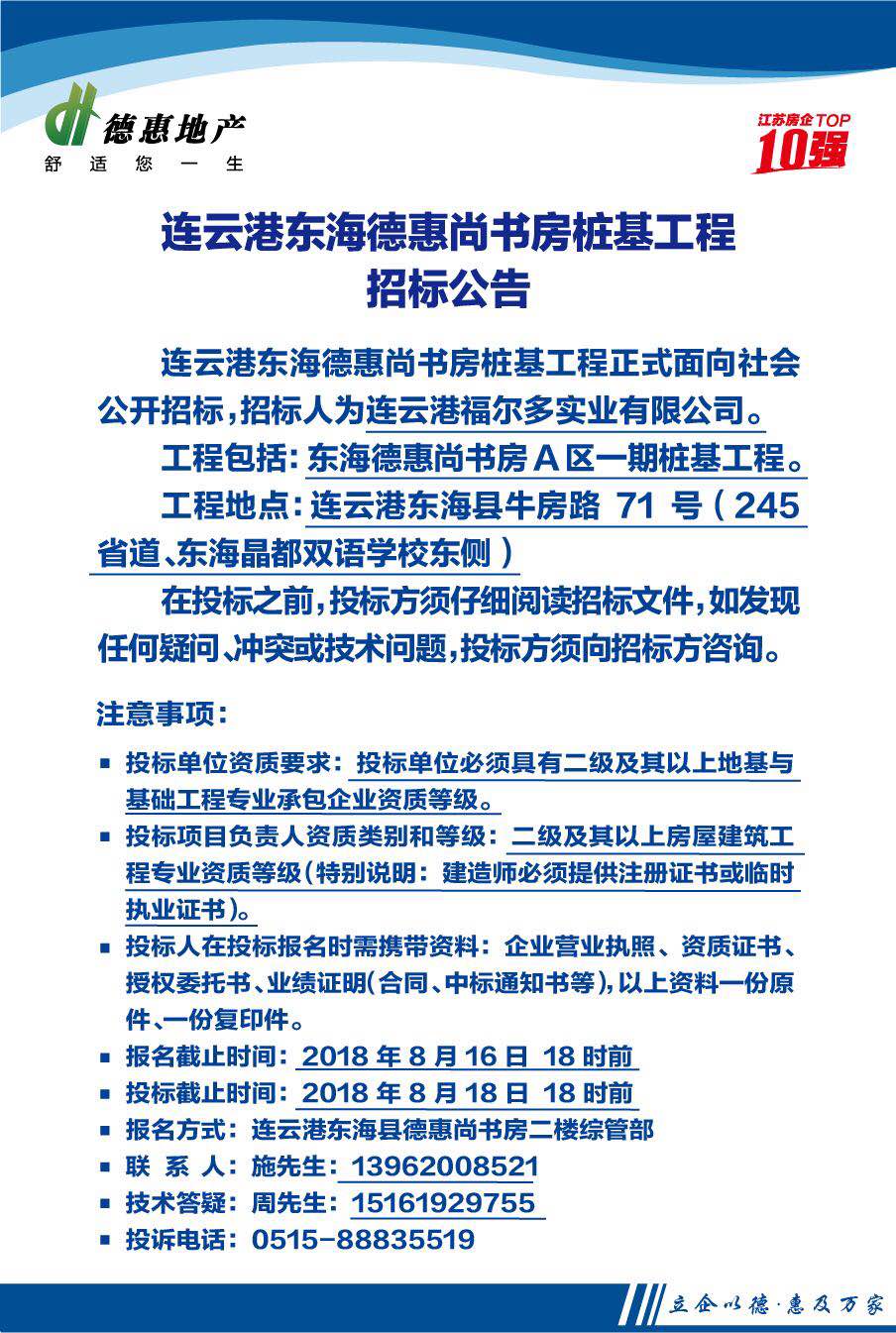 連云港東海德惠尚書房樁基工程招標(biāo)公告