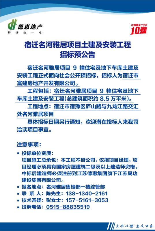 宿遷名河雅居項目土建及安裝工程招標(biāo)預(yù)公告