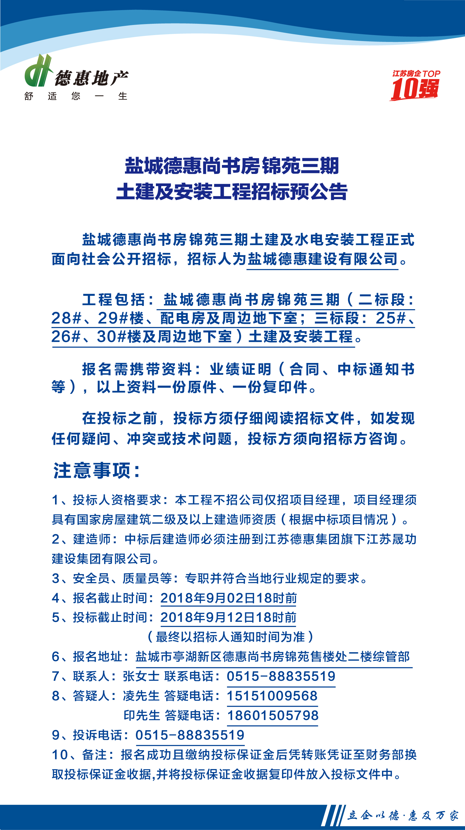 鹽城德惠尚書房錦苑三期土建及安裝工程招標(biāo)預(yù)公告