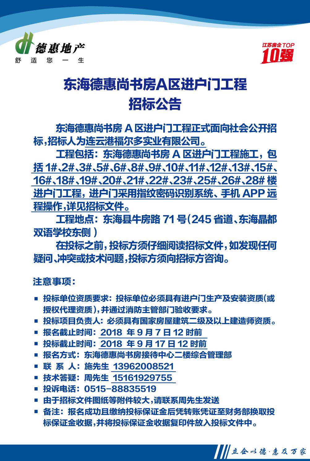 東海德惠尚書房A區(qū)進戶門工程招標(biāo)公告