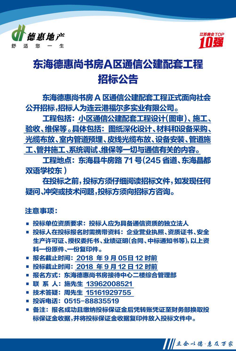 東海德惠尚書房A區(qū)通信公建配套工程招標(biāo)公告