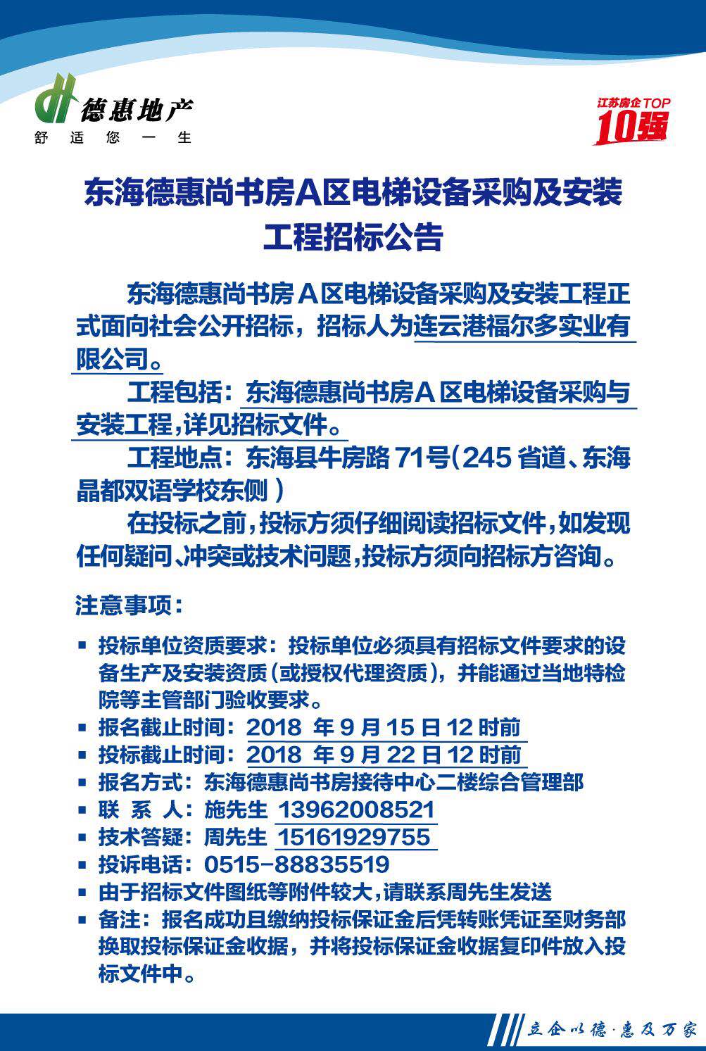 東海德惠尚書房A區(qū)電梯設(shè)備采購(gòu)及安裝工程招標(biāo)公告