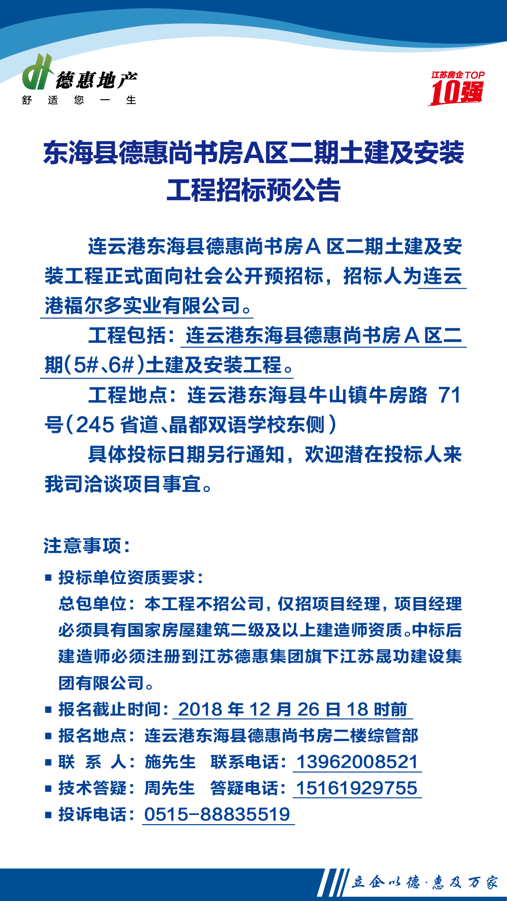 東海縣德惠尚書房A區(qū)二期土建及安裝工程招標(biāo)預(yù)公告