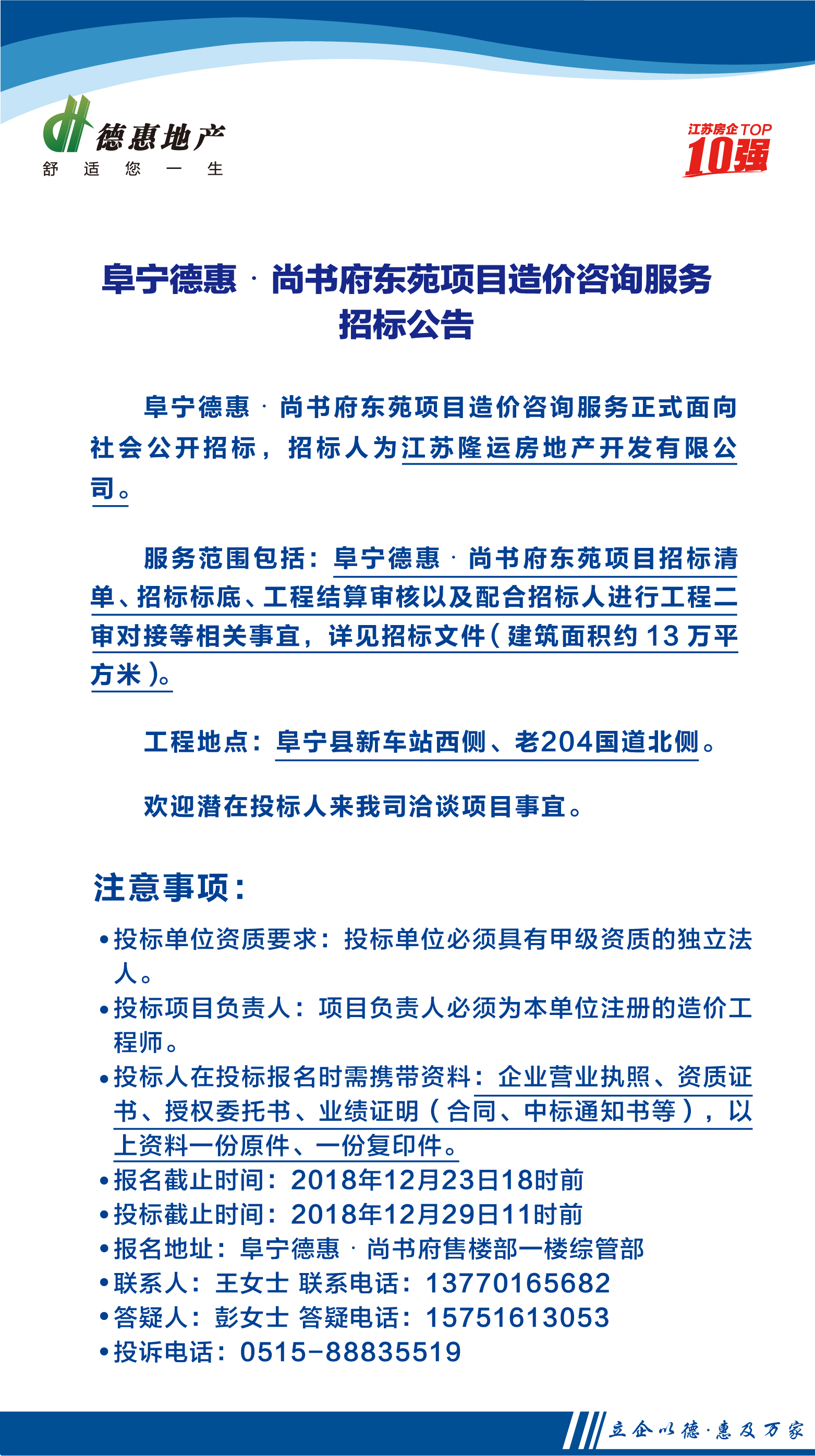 阜寧德惠·尚書(shū)府東苑項(xiàng)目造價(jià)咨詢(xún)服務(wù)招標(biāo)公告