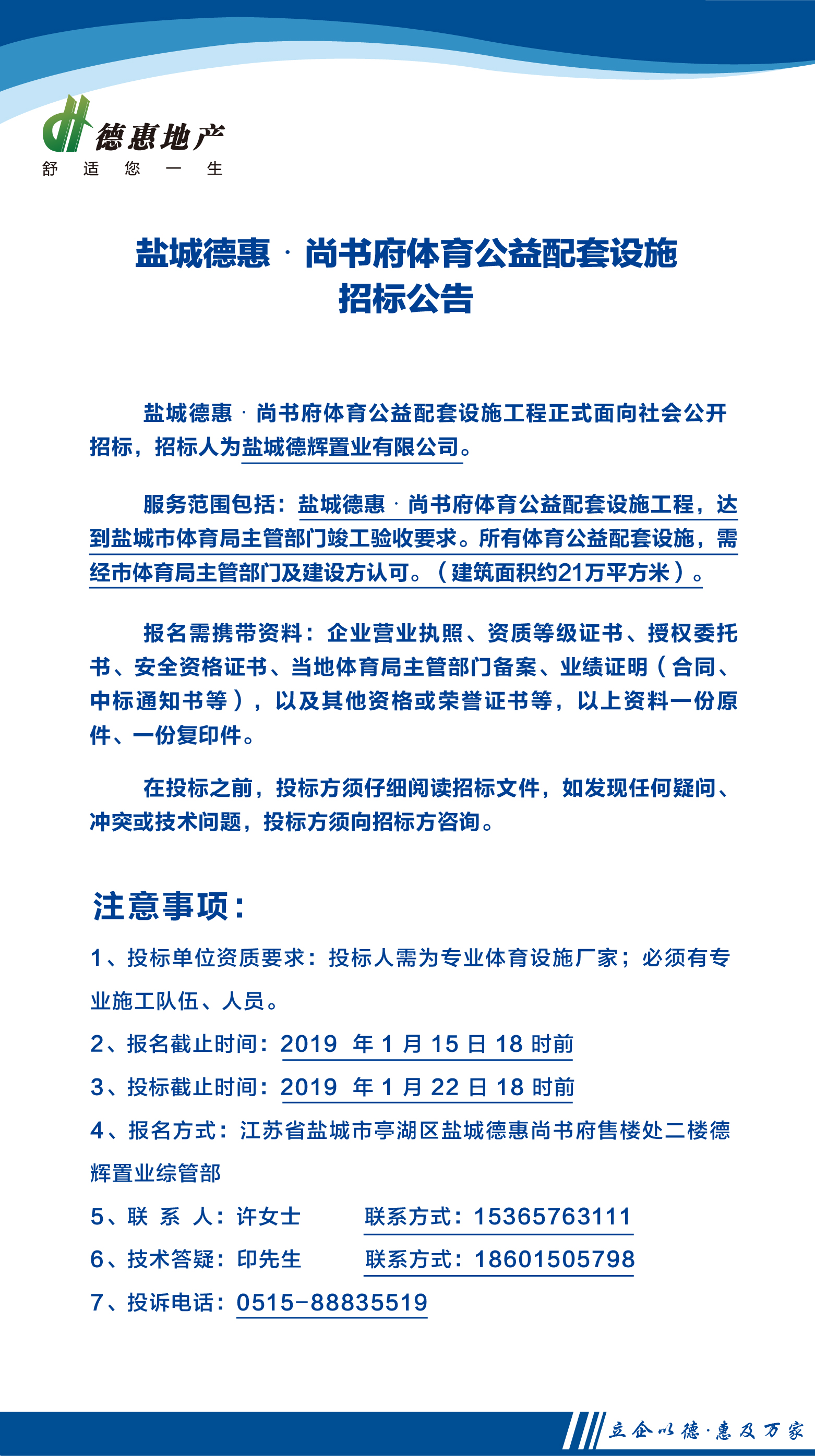 鹽城德惠·尚書(shū)府體育公益配套設(shè)施招標(biāo)公告