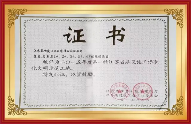 2015年10月,江蘇晟功集團(tuán)喜訊頻傳,承建的精品工程連獲政府嘉獎(jiǎng)。 |