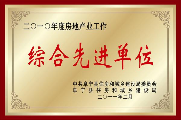 2011年2月,2010年度房地產(chǎn)業(yè)工作綜合先進單位