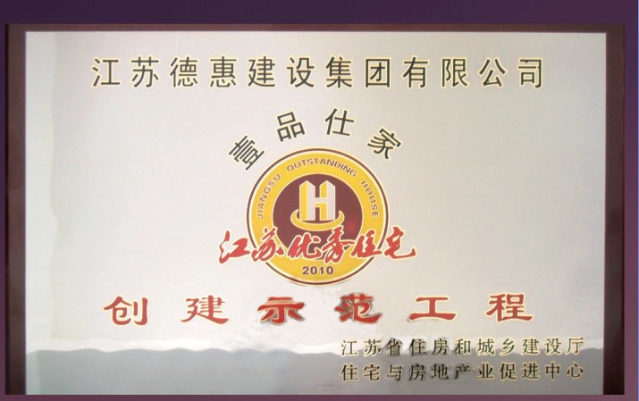 2010年,江蘇德惠建設(shè)集團(tuán)有限公司 壹品仕家 江蘇優(yōu)秀住宅 創(chuàng)建示范工程