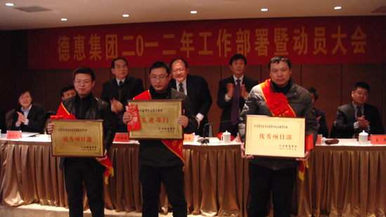 2月9日,德惠集團(tuán)在東方花園大酒店隆重召開“2012年工作部署暨動(dòng)員大會(huì)”, 朱文亮董事長(zhǎng)作了“立足新起點(diǎn),爭(zhēng)創(chuàng)新業(yè)績(jī),為實(shí)現(xiàn)集團(tuán)跨越式發(fā)展而努力奮斗”的主題報(bào)告。報(bào)告中總結(jié)了2011年取得的可喜可賀的業(yè)績(jī),全年實(shí)現(xiàn)商品房銷售近6萬平方米,回籠資金2.7億元;集團(tuán)實(shí)現(xiàn)總產(chǎn)值5.4億元,同比增長(zhǎng)29%,上繳稅收6043萬元,同比增長(zhǎng)98%,連云港綠源置業(yè)“秀逸蘇杭”項(xiàng)目投資5.1億元,春節(jié)前以1.7億元的地價(jià)一舉拿下了阜寧老年公寓南和新區(qū)實(shí)驗(yàn)初中東地塊,為集團(tuán)的發(fā)展儲(chǔ)備了后勁。 一年中,集團(tuán)員工活動(dòng)形式多樣,豐富多彩,黨建和工會(huì)工作有了新的起色,企業(yè)文化建設(shè)不斷得到加強(qiáng):3月集團(tuán)組織女職工到連云港花果山觀光;組織入黨積極分子參加縣級(jí)機(jī)關(guān)入黨培訓(xùn),并將部分同志上報(bào)給住建局黨委作為發(fā)展對(duì)象;4月組織全體員工參加了體檢;5、6月組織開展了為期一個(gè)多月時(shí)間的思想作風(fēng)整頓教育,集團(tuán)高層和子公司高層9名同志參加了“總裁執(zhí)行模式”的培訓(xùn)。7月組織了“慶祝建黨九十周年暨集團(tuán)成立一周年”廣場(chǎng)聯(lián)歡晚會(huì),集團(tuán)員工及其子女與小區(qū)業(yè)主們同臺(tái)獻(xiàn)藝,吹、拉、彈、唱、舞,精彩紛呈,黨史常識(shí)、企業(yè)文化知識(shí)搶答,臺(tái)上臺(tái)下互動(dòng),掌聲不斷,兩個(gè)多小時(shí)幾百名現(xiàn)場(chǎng)觀眾反映良好,深受壹品仕家小區(qū)業(yè)主們和社會(huì)各界的好評(píng);8月我們還組織了集團(tuán)中層以上人員、優(yōu)秀員工及其家屬和小孩赴延安、西安紅色革命圣地旅游學(xué)習(xí),并多次組織有關(guān)人員去杭州、上海、無錫、連云港等住宅小區(qū)參觀學(xué)習(xí);9月我們獨(dú)家贊助冠名的“德惠杯”阜寧縣老年體育運(yùn)動(dòng)會(huì),深受全縣老年朋友們的歡迎;10月改革了工資分配制度,實(shí)行了崗位職級(jí)工資與績(jī)效工資,員工的薪酬較上年有了大幅上漲,集團(tuán)兌現(xiàn)了去年年初動(dòng)員大會(huì)上的承諾。所有這些,凝聚了人心,鍛煉了隊(duì)伍,提升了信心。 2012年集團(tuán)工作的總體思路是:全面貫徹這次動(dòng)員大會(huì)精神,以科學(xué)發(fā)展觀為指導(dǎo),面對(duì)挑戰(zhàn)抓機(jī)遇,銳意進(jìn)取促增長(zhǎng),不拘一格引人才,創(chuàng)新方式方法,破解發(fā)展難題,增添發(fā)展活力,打破體制機(jī)制障礙,構(gòu)建有利于集團(tuán)健康發(fā)展的制度環(huán)境,為集團(tuán)實(shí)現(xiàn)跨越式發(fā)展而努力奮斗。 2012年工作目標(biāo)任務(wù) 集團(tuán)總產(chǎn)值8億元以上,其中建筑業(yè)產(chǎn)值3.5億元以上,房地產(chǎn)開發(fā)銷售額確保4.5億元以上,入庫(kù)稅收1億元以上;建設(shè)工程總承包資質(zhì)升一級(jí);集團(tuán)更名在國(guó)家注冊(cè)完成;壹品仕家項(xiàng)目全面交付使用,商業(yè)配套開業(yè);綠源公司“秀逸蘇杭”二期開工建設(shè),一期國(guó)慶節(jié)前銷售,春節(jié)前商業(yè)開工建設(shè),競(jìng)拍一塊不低于一百畝的土地;阜寧新拿的老年公寓南和實(shí)驗(yàn)初中東地塊完成項(xiàng)目公司的組建,確保春節(jié)前銷售;全面推動(dòng)制度管理和目標(biāo)管理,強(qiáng)化全體員工的大局意識(shí)和責(zé)任意識(shí),廣招人才,打造一支務(wù)實(shí)高效、指揮有方、執(zhí)行有力的核心管理團(tuán)隊(duì);打造“服務(wù)型”企業(yè),用優(yōu)質(zhì)的服務(wù)贏得市場(chǎng),以優(yōu)異的成績(jī)迎接黨的十八大勝利召開。 2012年工作方法措施 堅(jiān)定不移地繼續(xù)開展“統(tǒng)一領(lǐng)導(dǎo)班子思想認(rèn)識(shí),提高認(rèn)識(shí)水平,增強(qiáng)凝聚力,提高執(zhí)行力,提升領(lǐng)導(dǎo)層的綜合素質(zhì),提高領(lǐng)導(dǎo)層的綜合領(lǐng)導(dǎo)能力”工作,養(yǎng)成雷厲風(fēng)行、重在執(zhí)行、一絲不茍、負(fù)重奮進(jìn)的良好風(fēng)氣;狠抓“規(guī)章制度”、“績(jī)效管理辦法”的學(xué)習(xí)、宣傳、貫徹、落實(shí)工作,在集團(tuán)上下掀起學(xué)制度、用制度的熱潮,堅(jiān)決貫徹結(jié)果導(dǎo)向原則;財(cái)務(wù)管理、審計(jì)、融資工作再上新臺(tái)階;加強(qiáng)開發(fā)方案前期的研究策劃工作;加強(qiáng)企業(yè)文化建設(shè),提升企業(yè)文化軟實(shí)力;繼續(xù)抓好發(fā)展建言獻(xiàn)策活動(dòng);堅(jiān)持把學(xué)習(xí)放在首位;加強(qiáng)學(xué)習(xí)型、服務(wù)型企業(yè)建設(shè),堅(jiān)持立足當(dāng)前,著眼長(zhǎng)遠(yuǎn);強(qiáng)化領(lǐng)導(dǎo),從我做起,率先垂范。 會(huì)上,副董事長(zhǎng)葉為利宣讀了集團(tuán)2011年度表彰文件,集團(tuán)領(lǐng)導(dǎo)給獲獎(jiǎng)的“先進(jìn)部門”(壹品仕家項(xiàng)目公司工程部)、“優(yōu)秀項(xiàng)目部”(江蘇晟功壹品仕家景觀綠化項(xiàng)目部、江蘇晟功壹品仕家超市綜合樓項(xiàng)目部”)、“優(yōu)秀員工”(王惠玲、吳士萍、朱文俊、伏宜車、黃仕榮、劉必春)、“工會(huì)積極分子”(劉文彥