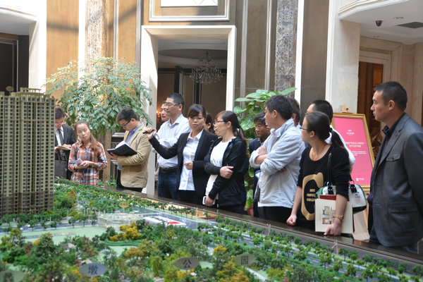 綠城·玉蘭廣場銷售經(jīng)理為考察團講解樓盤營銷情況