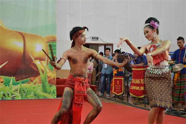 牛歌是廣大勞動(dòng)人民在長(zhǎng)期勞動(dòng)實(shí)踐中的藝術(shù)創(chuàng)作,是一種非物質(zhì)文化遺產(chǎn)。趕著牛兒,揚(yáng)著皮鞭的場(chǎng)景已經(jīng)一去不復(fù)返,抑揚(yáng)頓挫的牛歌也逐漸淡出人們的記憶,現(xiàn)在人們都很難再聽到這支穿越時(shí)空,傳承著數(shù)千年農(nóng)耕文化的聲音,也難以體會(huì)到那曾經(jīng)久久地回蕩在天地之間的牛歌號(hào)子。然而就在今天,來自國(guó)內(nèi)外的藝術(shù)團(tuán)體為我們呈現(xiàn)了一場(chǎng)別致的文化盛宴。牛歌號(hào)子在舞臺(tái)的上空回旋,手中的皮鞭打響了又一場(chǎng)耕種,年輕人歡悅的身影再次重現(xiàn)了牛耕的場(chǎng)景。斯里蘭卡珍寶舞蹈學(xué)院藝術(shù)團(tuán)和印度薩維姆·恩汝提文化學(xué)院的舞者們都赤著雙腳跟隨著節(jié)拍,帶著全場(chǎng)一起走進(jìn)他們的民族文化,在斯里蘭卡和印度,跳舞要脫掉身上的鞋子、手表等物品,以示對(duì)神靈與來者的尊重。除此之外,俄羅斯、埃及、泰國(guó)等7個(gè)國(guó)家藝術(shù)團(tuán)體也給我們呈現(xiàn)了屬于他們自己的民族風(fēng)情,讓我們感受到了不同民族的藝術(shù)魅力。