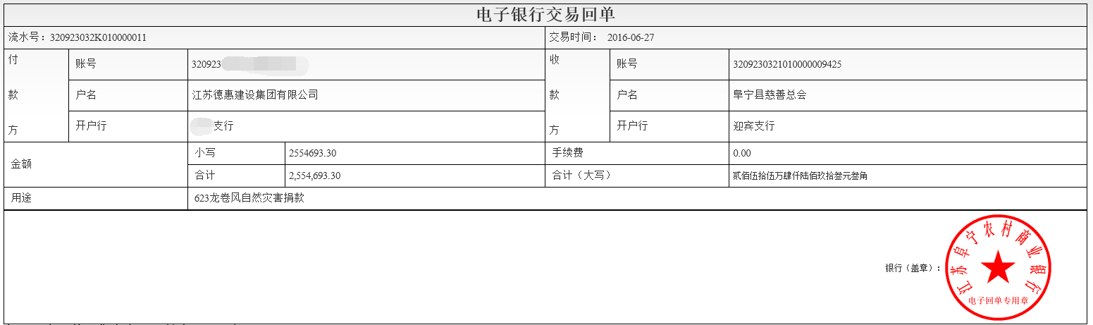 | 上一篇:熱烈祝賀江蘇德惠集團榮膺2016中國房地產開發(fā)企業(yè)江蘇20強! 下一篇:記錄一家阜寧企業(yè)救災的全過程 |