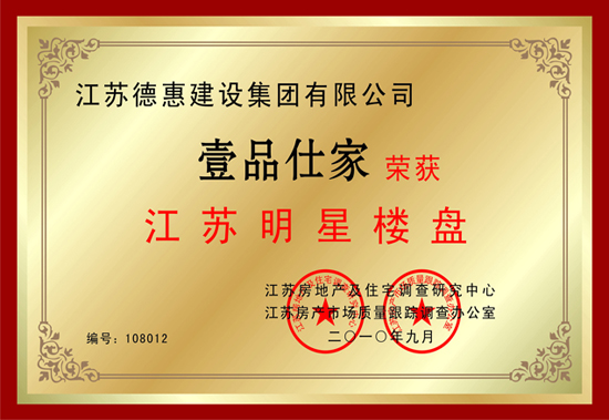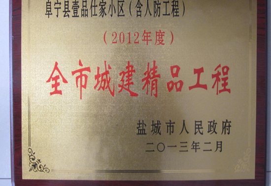 2013年2月,德惠集團、德惠•壹品仕家小區(qū)捷報連傳:德惠集團被縣住建局評為2012年度“綜合先進單位”,被縣政府評為2012年度“綜合先進企業(yè)”;整個壹品仕家小區(qū)住宅銷售全部清盤,同時被鹽城市人民政府評為全市唯一的2012年度“全市城建精品工程(含人防)”——這也是德惠•壹品仕家小區(qū)繼榮獲“鹽城市優(yōu)秀物業(yè)管理小區(qū)”、“江蘇省優(yōu)秀住宅”、“江蘇省園林式居住區(qū)”等諸多榮譽之后,獲得的又一殊榮。