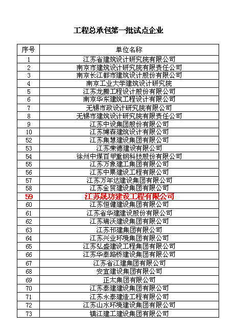 2017年10月31日,江蘇省住房城鄉(xiāng)建設(shè)廳公示了第一批工程總承包試點企業(yè),共99家企業(yè)入圍。江蘇晟功建設(shè)集團成功通過政府主管部門評比、認定,榜上有名。