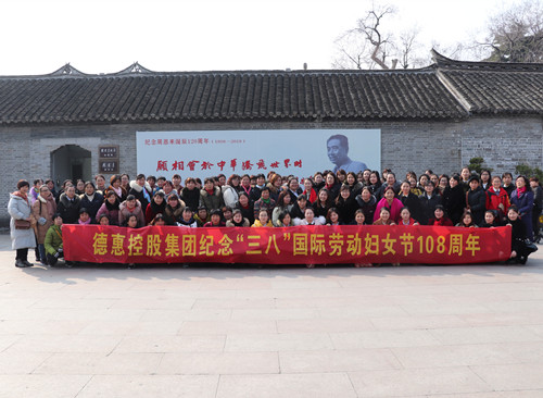 2018年3月8日,德惠控股集團舉辦了紀念“三八”國際婦女節(jié)108周年活動,組織集團全體女職工前往淮安開展紅色教育。 本次活動以“三八婦女節(jié)”和周恩來總理誕辰120周年為契機,以“學習周恩來精神,爭做新時代女性”為活動主題,集團全體女職工先后參觀了愛國主義教育基地——周恩來故居、周恩來紀念館。