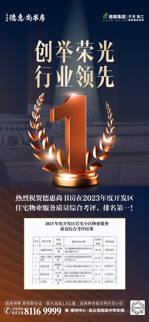 熱烈祝賀德惠尚書房在2023年度開發(fā)區(qū)住宅物業(yè)服務(wù)質(zhì)量綜合考評,排名第一!